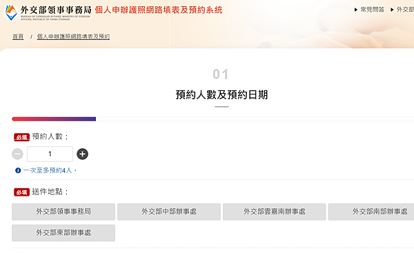 先預約現場送件的時間,要選擇預約送件人數和地點