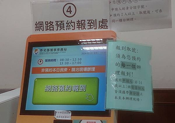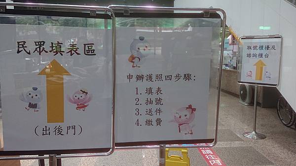 在一樓大廳有申辦流程4步驟,先去填表格,再去右邊櫃檯取號