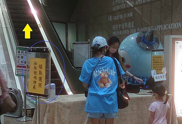 拿到號碼牌就從黃箭頭指的手扶梯上3樓