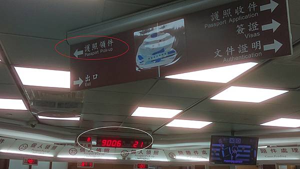 3樓左邊是領護照區,現場申辦護照的朋友請往右走,依燈號指示送件