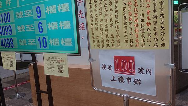 為了讓大家不要看到號碼再趕著衝上樓,或太早上去乾等,有個小告示,建議接近100號內再上3樓。例如你是5168號,螢幕叫號到5070號左右就可以準備上3樓了。