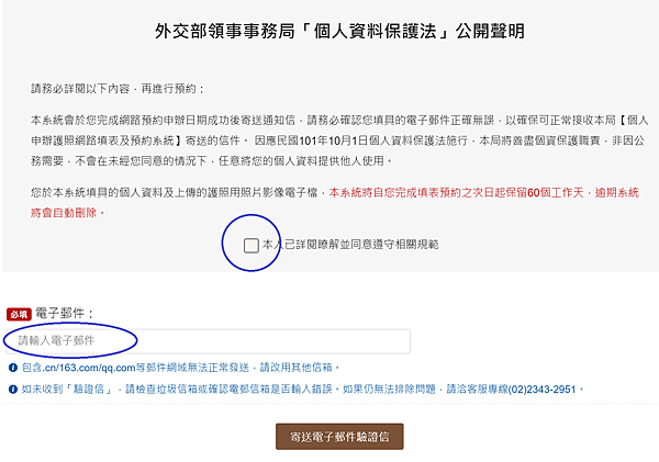 記得勾選"本人已詳閱瞭解並同意遵守相關規範",填寫電子郵件,按下寄送電子郵件驗證信之後,email會收到驗證碼,填進系統中。